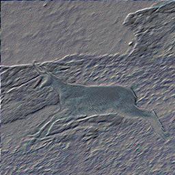 | Yet another convolution operator: This is in a way the difference between the sharpened picture and the source picture, with added grey.